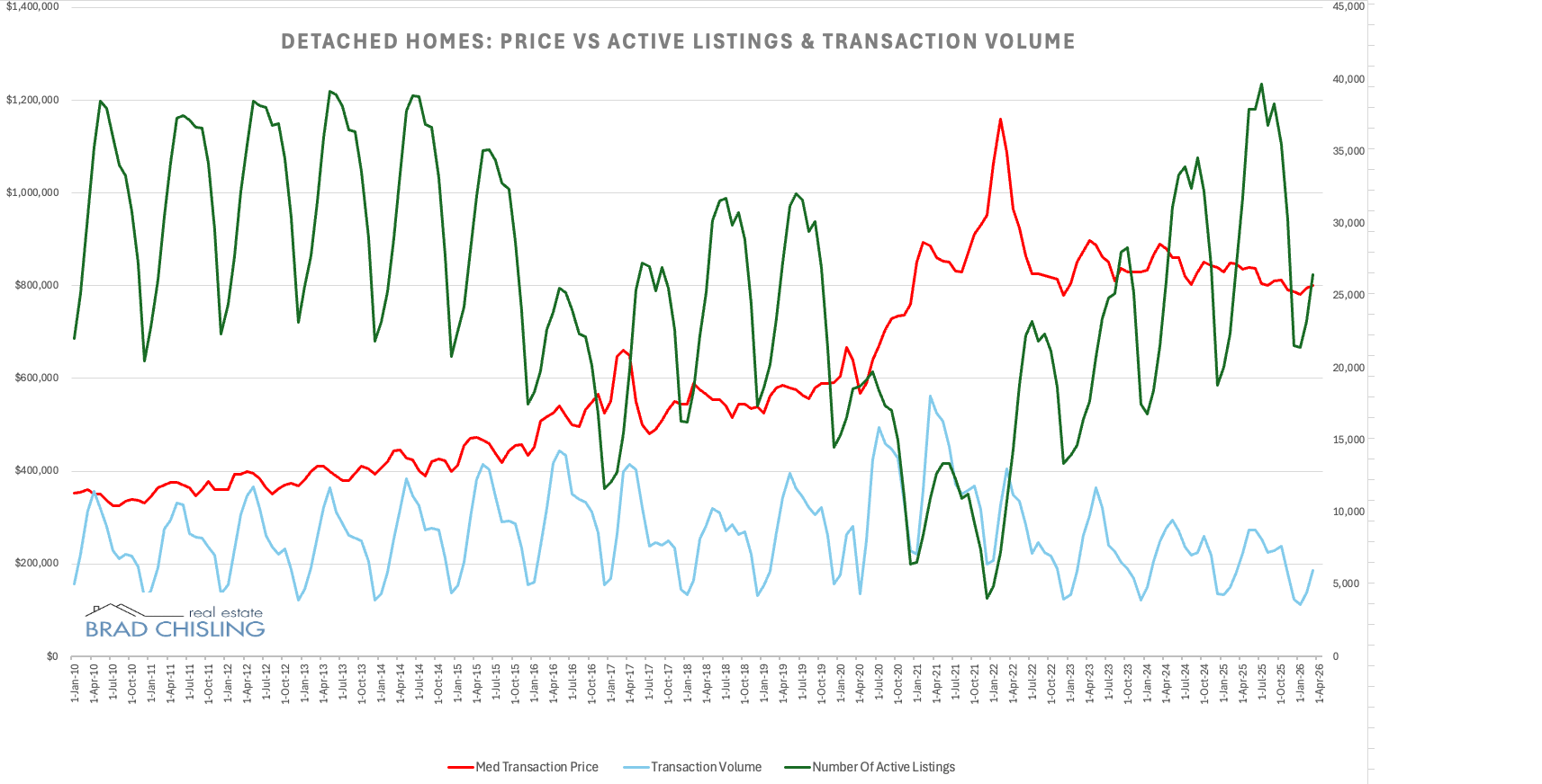 These metrics point toward a stabilizing and resilient residential market. We aren't seeing a flood of distressed sellers; rather, we see families simply looking to move into their next chapter. While the luxury market is seeing some great opportunities for buyers, the broader detached market is stabilizing. In fact, because active listings are still lower than last year, we are seeing prices begin to firm up as more buyers enter the spring market.